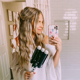 We saved the most iconic look for last—mermaid waves. This technique creates bold, evenly spaced curves with that signature beachy texture. It’s especially great for straight or slightly wavy medium to long hair. To get the look, you’ll need a triple-barrel waver. Our top pick? The Drybar Mixologist Interchangeable Styling Iron, which comes with three snap-on attachments and an ergonomic design that makes styling feel less like a workout.