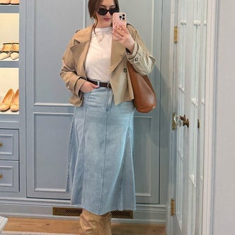If you've got a pear shape, you'll find that the eye is often drawn toward the lower half of your body. You can either lean into it with curve-loving silhouettes like slip skirts or curve-enhancing bootcut jeans. You may also want to balance out the two separate halves of your body with off-the-shoulder tops or striped blouses that draw attention upward. Just be mindful of lengths—steer clear of tops or jackets that hit right at your widest point. Cropped styles that stop at the waist are usually your best bet.