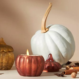 One of the most telltale signs that fall is near—besides the arrival of the Pumpkin Spice Latte at Starbucks, obviously—is the launch of Anthropologie's autumn home decor collection. Year after year, the retailer never fails to provide all the cozy scented candles, textured throw pillows, and gourd-related everything one could ever ask for. These little touches are an excellent way to freshen up a space with little effort or funds, and it's also a perfect way to get into the fall spirit when the weather feels anything but.
