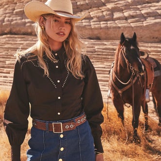This limited-edition drop redefines what it means to wear Western-inspired pieces today. It’s not all fringe and rodeo (though we wouldn’t be mad about that)—instead, it leans into effortless silhouettes, easy layering pieces, and vintage-inspired elegance that feels equally nostalgic and new. Think perfectly tailored bootcut jeans, throwback graphic tees, and button-downs that tie the whole vibe together.